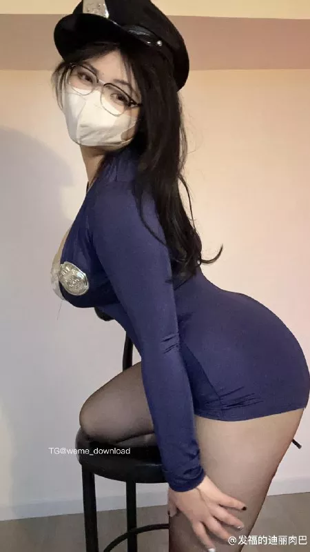 首先,我们有一位深蓝色紧身连体服美女,她曼妙的身姿勾勒在这件衣服之下,匈前的拉链微微敞开,露出精致的蕾丝内衣。若隐若现的肌肤让人心旷神怡,同时也给人一种撩人的感觉。配上黑色警帽和细框眼镜,她展现出霸气与妩媚兼具的魅惑形象,让人忍俊不禁。