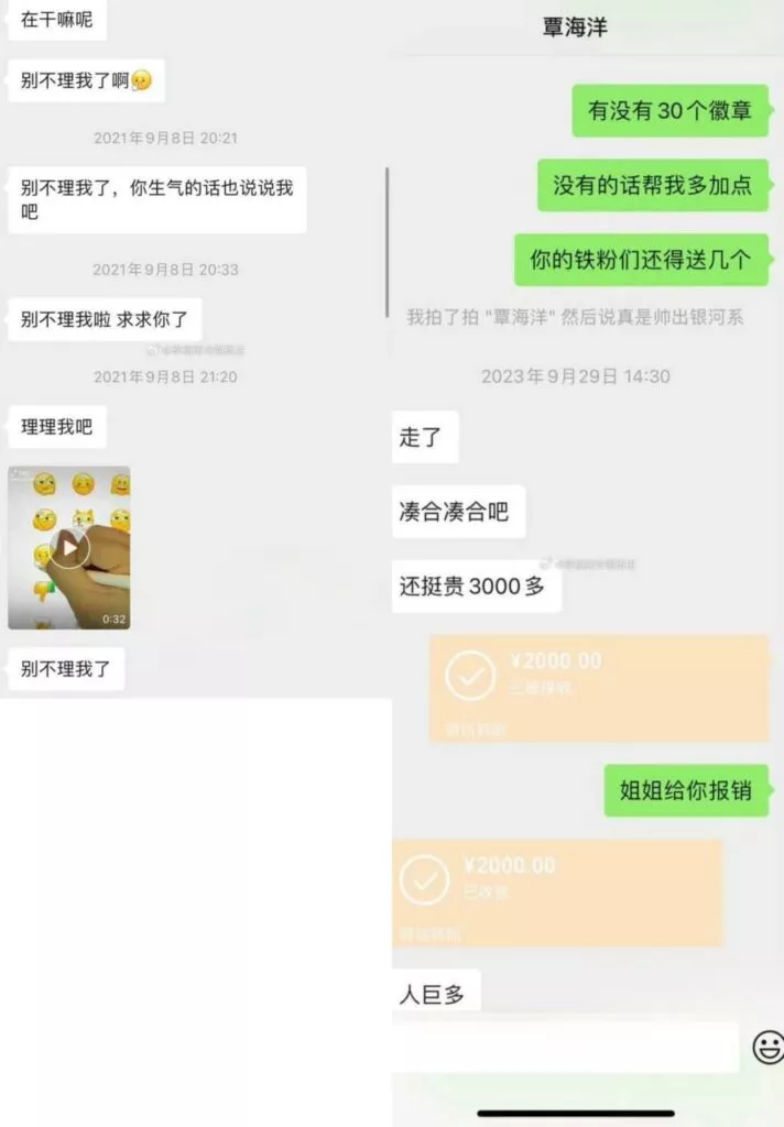 另有传言覃海洋自曝不雅视频,但目前多为拼接视频,女主甚至脸都不像,瓜贩子一点都不认真了。