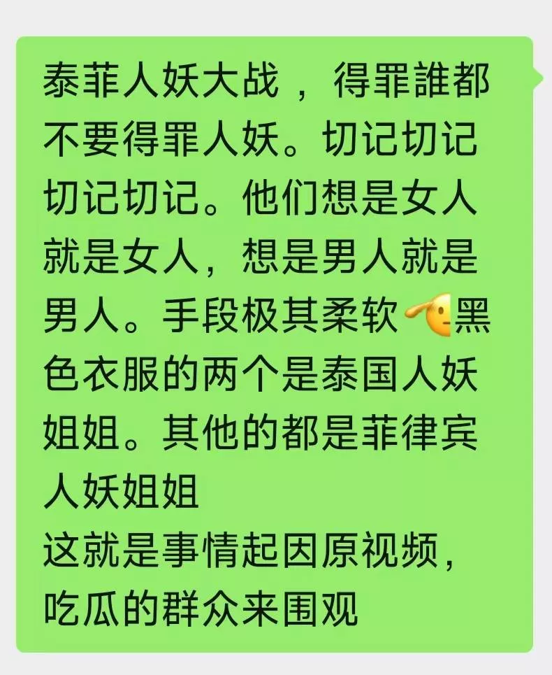 举着鞋子就开干,甚至还出现了“空降部队”,现场警察根本拉不住,还挨了人妖几巴掌。最后据说泰国人妖大获全胜,菲律宾人妖被打得第二天早上收拾行李准备回国了。