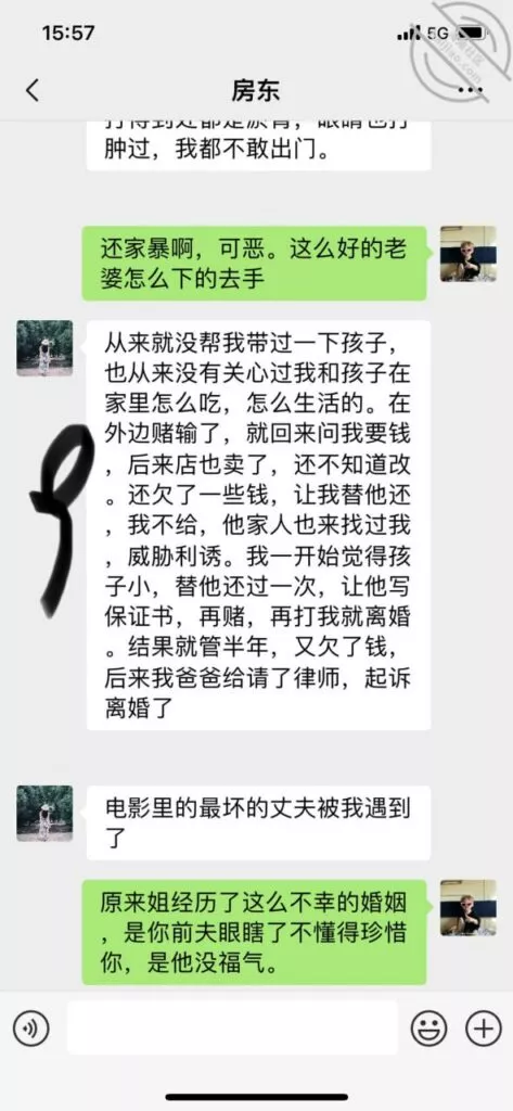 前几天跟房东聊了一下家常,可能女人有时候气氛到了,就想找个人畅谈一下自己的心事吧,给我说了一下她的过去,原来也是个苦命的女人,以前的老公,准确说是前夫吧,啥也不管没有担当,还总是打她,导致现在离异现在自己带着孩子的场面,我说实话我一个男的听了就气不打一处来