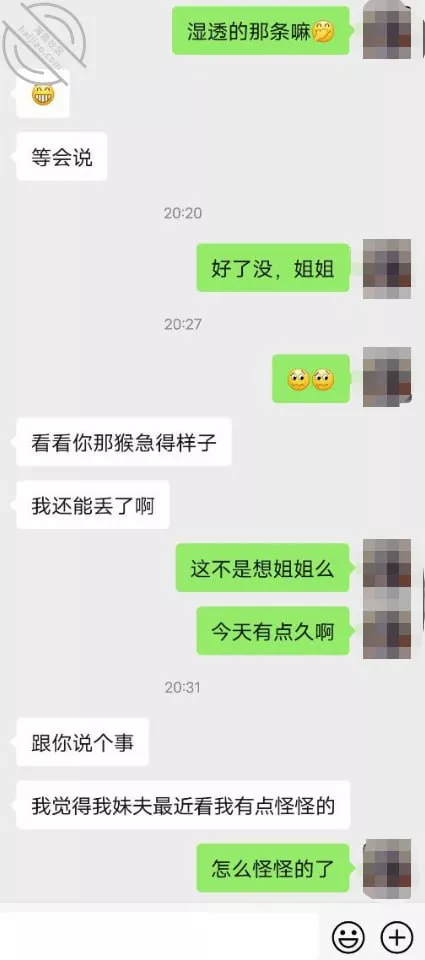 而且真的跟我预感的一样,大姨子发现了我这个妹夫用她内裤打手枪的事了,果然还是熟女经验多脸皮厚点,我也没想到她会这么堂而皇之的跟我这个小号说出这些,这种一人扮演两种角色接近大姨子的感觉真的好刺激啊!