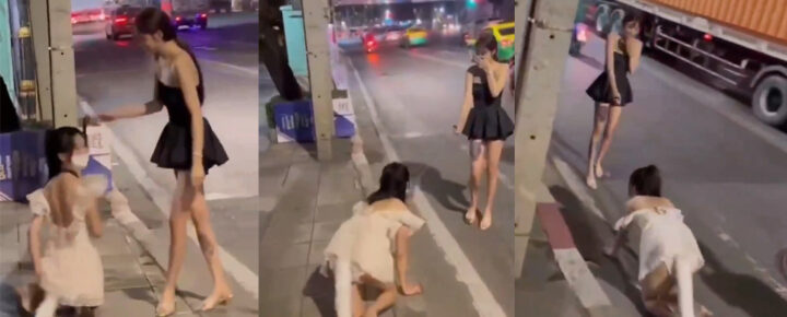 深夜广东街头惊现sm圈大佬户外训练黑衣女子牵着走
